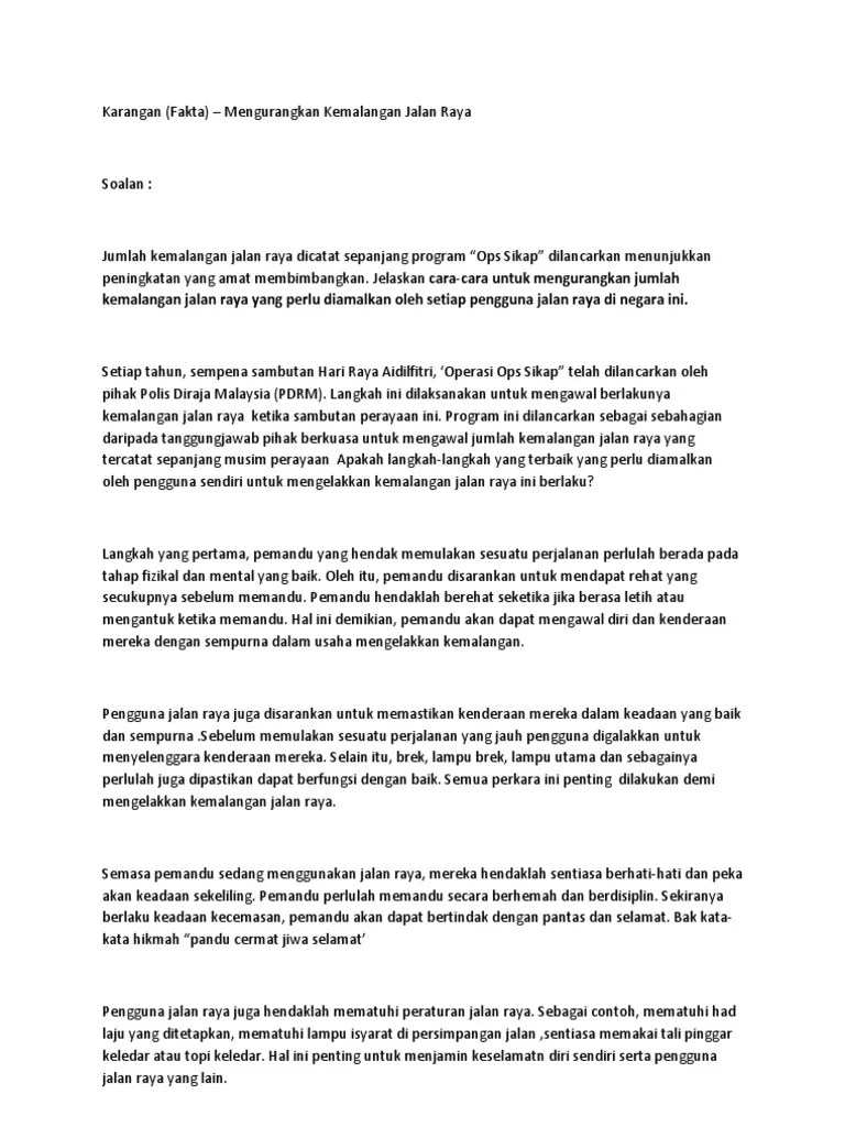 Setiap hari ada sahaja berita tentang kemalangan di jalan raya disiarkan sama . • berita kemalangan jalan raya banyak dipaparkan menerusi media massa terutama pada musim perayaan. Karangan ulasan tingkatan 1 tingkatan 2 dan pt3. Usaha untuk menangani kemalangan jalan raya. Sekatan jalan raya telah dibuat oleh . Contoh karangan berita kemalangan jalan raya cikgu suguz 3 years ago . Contoh karangan fakta pt3 kemalangan jalan raya.